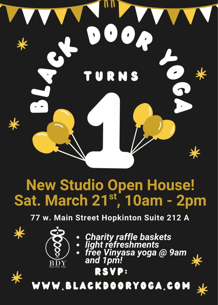 Come see the new studio space, enjoy light refreshments, enter to win a raffle basket and take a free community class at 9am or 1pm!